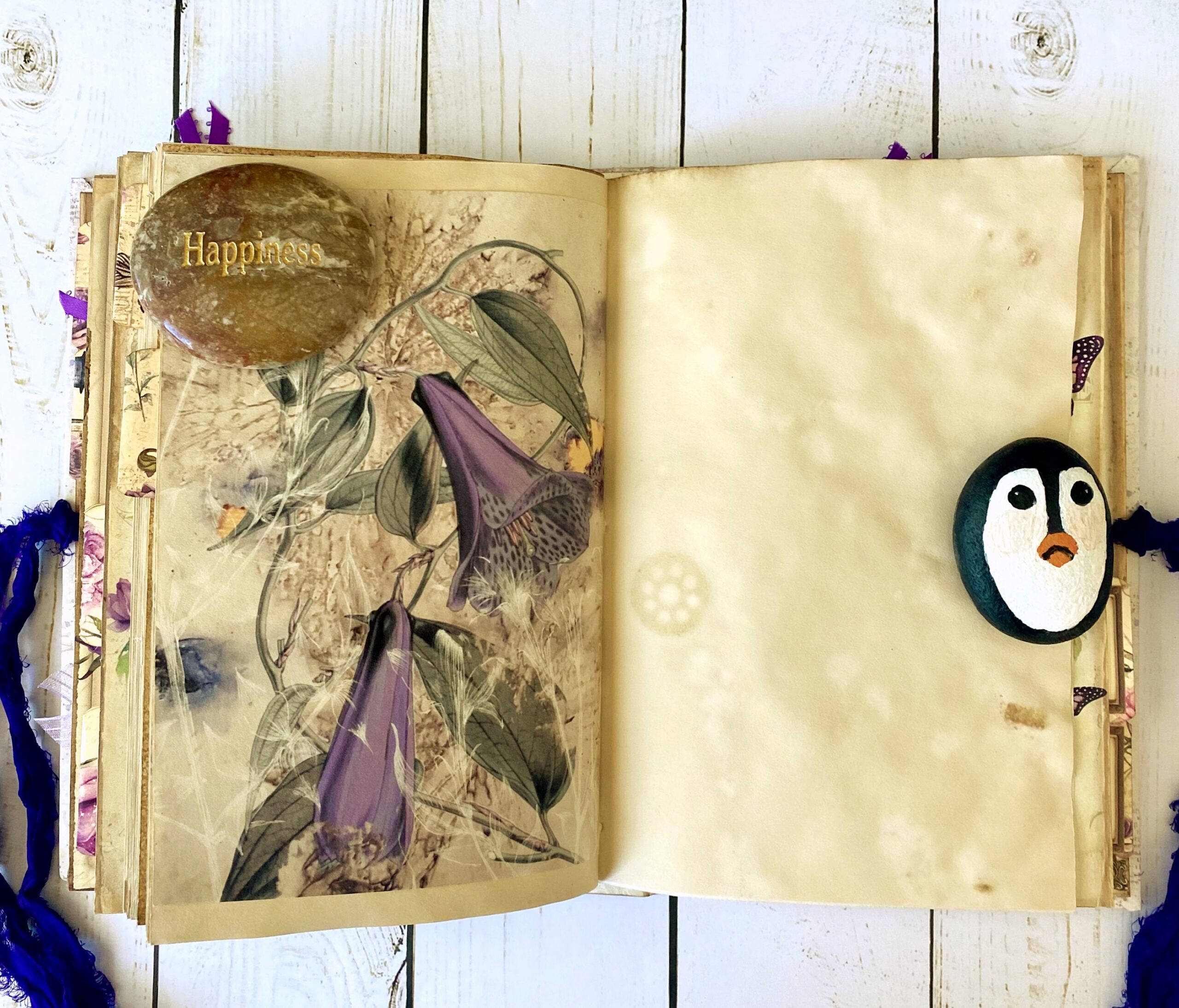 All of my journals are created in a pet friendly, smoke free environment. These journals are lovingly made by hand, not by machine and this means they may not be “perfect”. Their slight imperfections only lend to their charm and uniqueness.